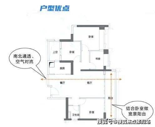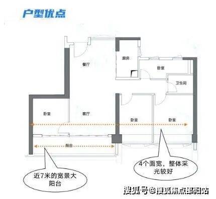 这是端头户型,所以整个房子是三面采光,每个空间的采光都比较好。这个户型的客厅和阳台都朝西,看皇岗公园景观。