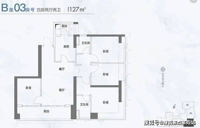 A02/A05/B03户型,122-127㎡,4房2厅2卫