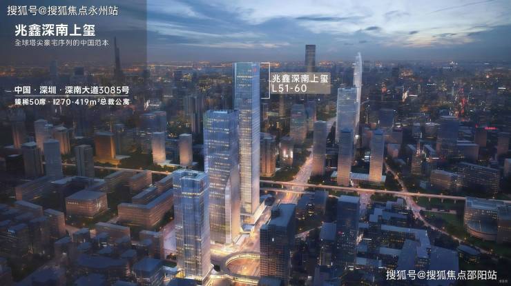 兆鑫汇金广场项目占据深南大道400m沿街封面,262m地标高度,是金三角城市更新首发之作,涵盖了商业办公、商务公寓、总裁公寓等业态的约28万㎡综合体(
