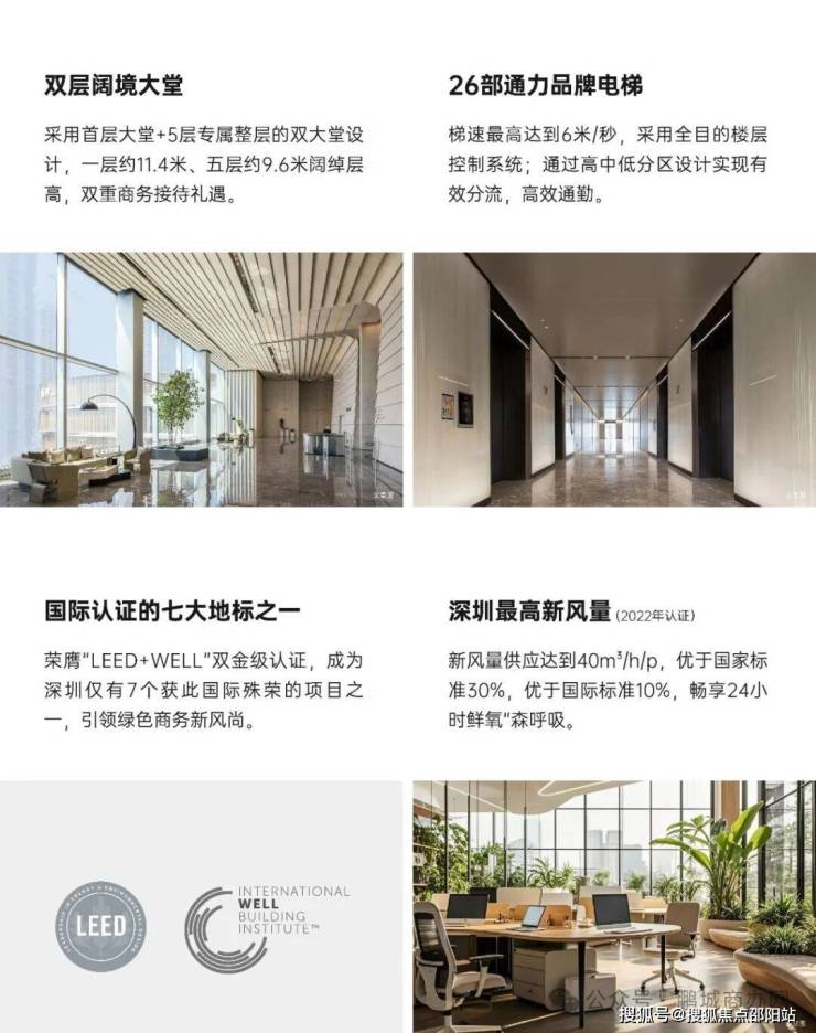 绿色商务:LEED + WELL 双金级认证、悦享深圳最高新风量、约𝟑𝟕𝟎𝟎㎡空中花园