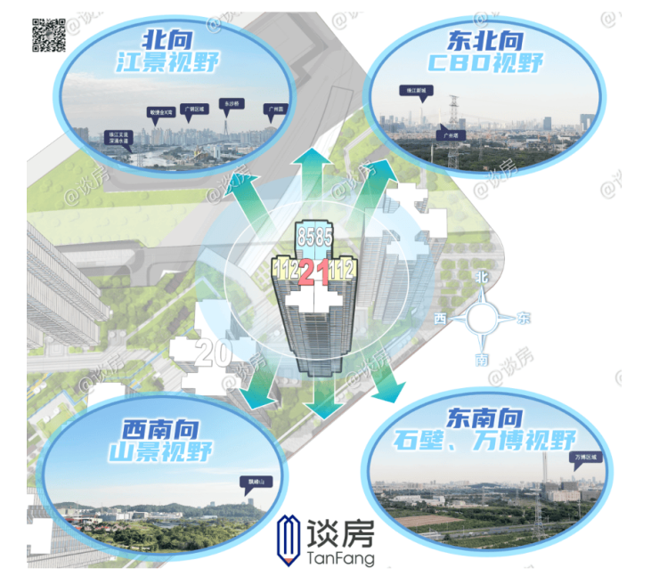 超高层建筑设计,超开阔、超宽广、超通透,北望三江汇聚、小蛮腰,南望南站城市景观