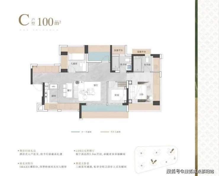 100平做到了横厅四房两卫,南北通透,并且主卧双面采光!