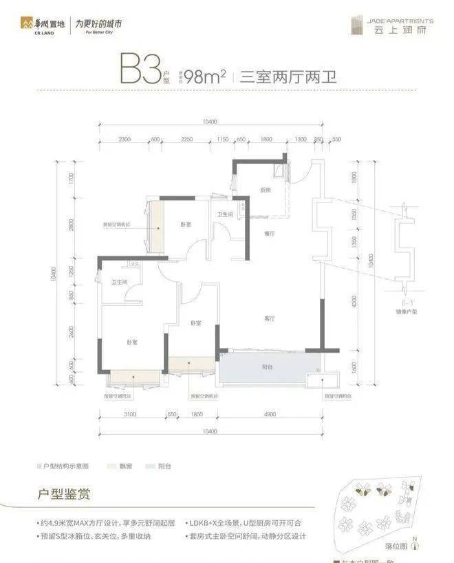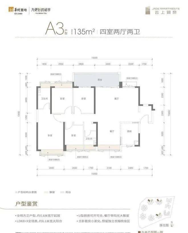 西部红盘,华润央企,云上润府,约98-132-135㎡3-4房2卫
