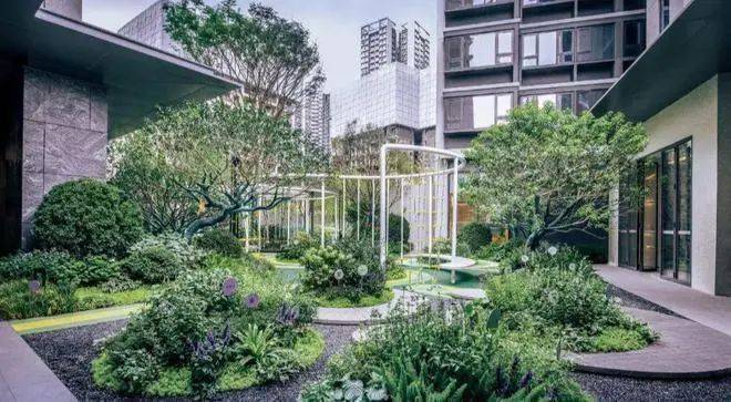 纯粹园林享森居美学。庭院深深,葳蕤相映,景致错落,精心挑选的朴树、乌桕、紫花风铃木等树木,让归家的每一步都能看见异样风景,目之所及皆自然。漫步其中,身心在鲜氧及绿意中慢下来,生活的悠然感扑面而来。