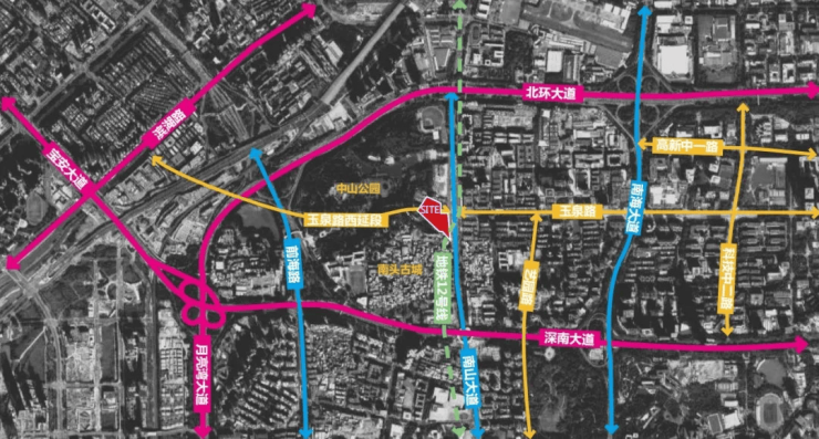 另外,规划中的 21号线,未来也将在此设站,并与12号线交汇,路线站点已公布,也就是说,该项目以后可能是个 双地铁盘。自驾方面,项目东侧即是主干道 南山大道,北面是 北环大道,自驾去往前海、深圳湾、宝安都很方便。