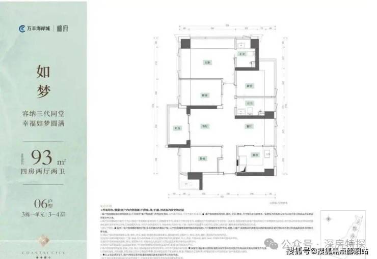 超16米东南采光面,阳台超7米宽;主卧进深4.5米,L型飘窗可270度景观。