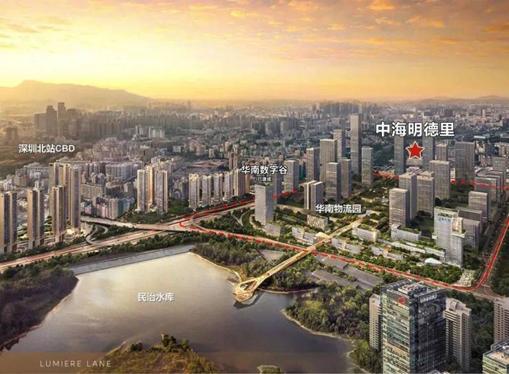 民治,新晋深圳都市核心区龙华“一圈一区三廊”重点发展格局:数字龙华,中轴新城腾飞;北站国际商务区,高投入打造国际化城市客厅;明德里,于双区之中,在重点产业走廊之上,区域优势得天独厚