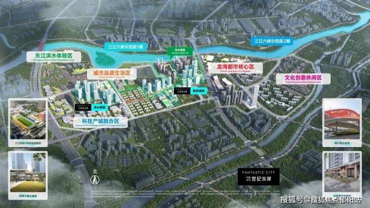 项目围绕着东江,铺开占地约20.5万平的宏伟蓝图,总建面80万平,涵盖了住宅、商业、学校、市政配套在内的多种业态。