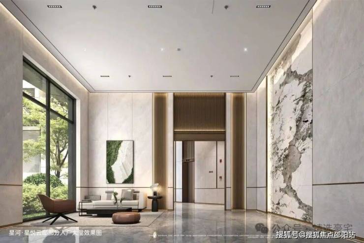 · 悦感公区空间-品质感匠心工艺铸造,诠释高品质之美约6米舒展层高采光大堂,均有采光幕墙;楼栋大堂专属岩板背景墙,潘多拉奢石纹理,内嵌隐藏式光源,设备巧妙暗藏式处理;充分从人性化角度出发打造舒适休息区、会客厅。