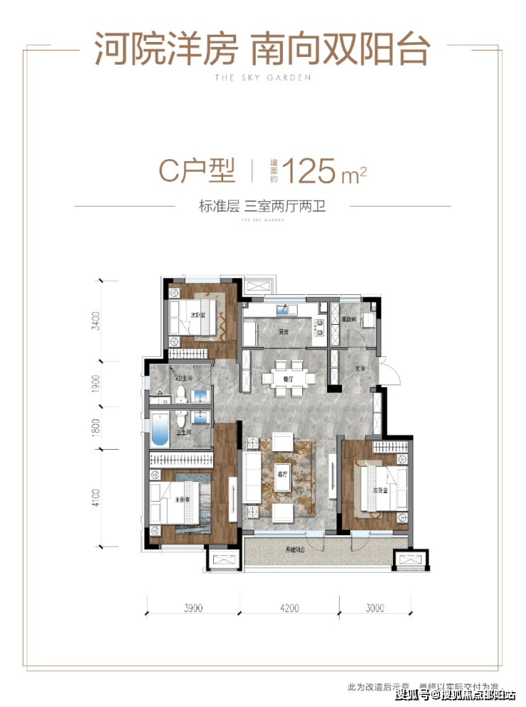产品信息:建筑面积约118/130㎡三房小高(20F),建筑面积