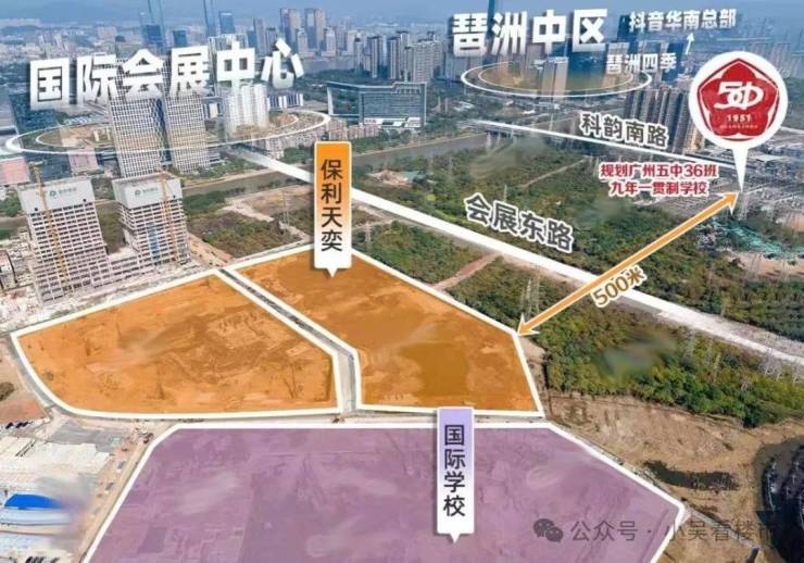 教育方面,今年保利也正式官宣:项目东南侧500米的公立九年制学校,确定由广州市第五中学领衔办学,学校位置就在琶洲三姐妹地块,不过目前这块地还没拍卖,所以学校什么时候建成,什么时候能投入使用还是个未知数。