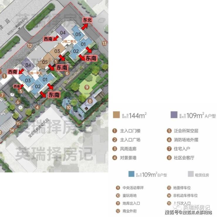 分布在2栋1/2单元。01、02朝东南向,03/05朝西南/东北向,其中朝东南向的最多,25楼以上景观视野好(城市景观)