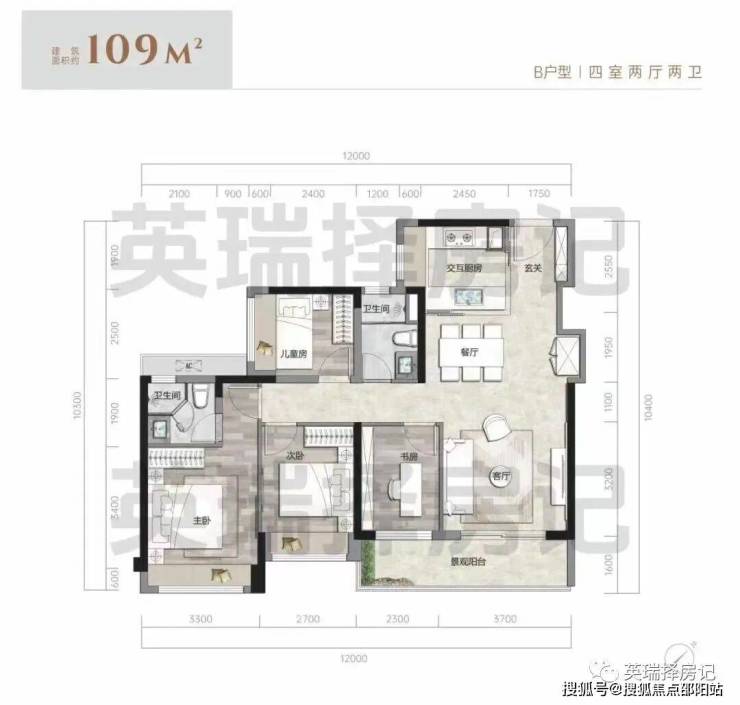 【建面约 109 ㎡B户型 4房2卫】