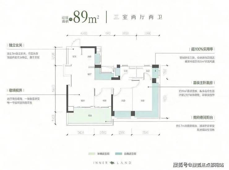 • 89㎡ 3房2卫:紧凑实用,小家庭优选
