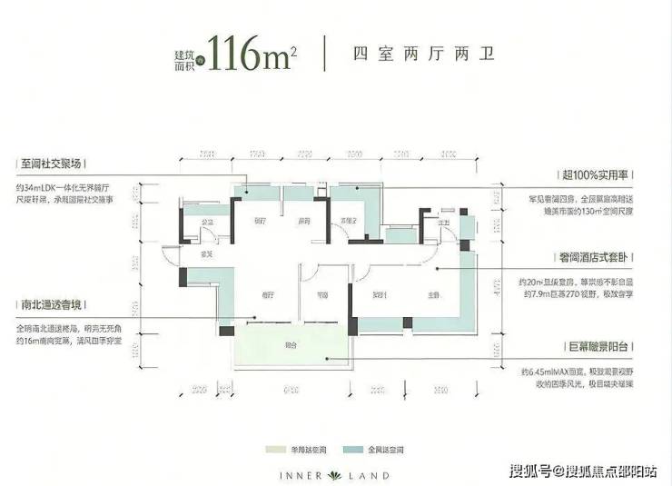 • 116㎡ 4房2卫:板块内面积最小的通透舒阔4房