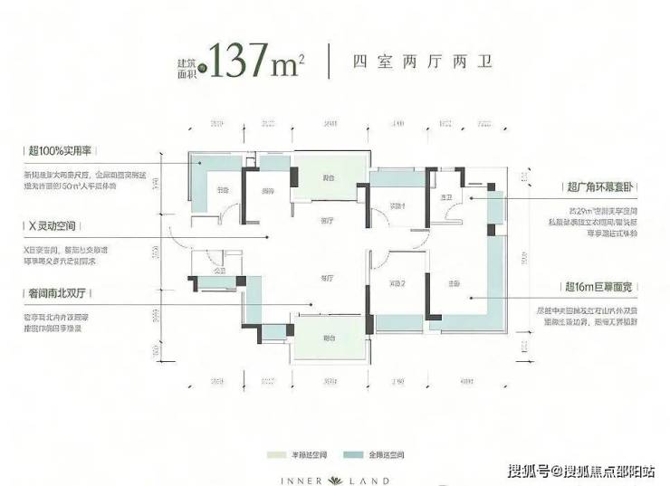 • 137㎡ 4房2卫:宽厅4+X户型,南北双厅,南光南法园林,北看红花山