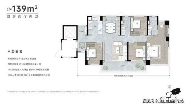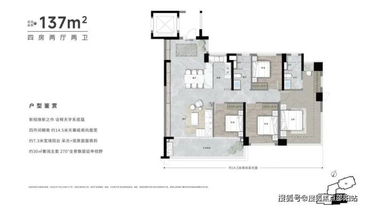 〖137㎡〗💫T3类独梯独立玄关入户,超100实用率💫四开间朝南约14.5米天幕级南向面宽💫约7.3米景观阳台 采光+景观面面俱到💫约30㎡奢阔主套 270°全景飘窗延伸视野