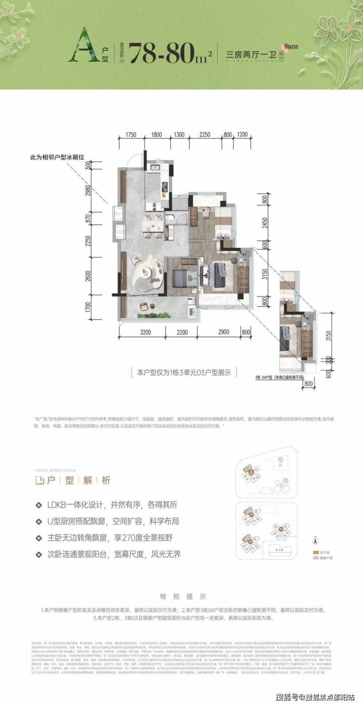 首次推首北地块1栋3单元,约80-92㎡ 3房,共195套,新规使用率高达96%-105%!