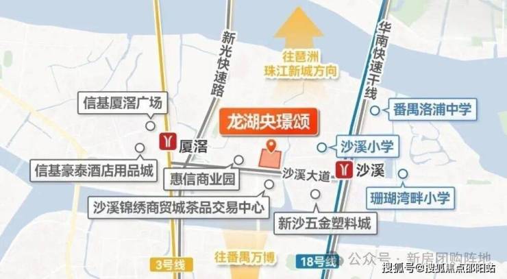 龙湖亚伦·央璟颂位于广州城市中轴向南发展核心,往北即琶洲、珠江新城CBD,往南即长隆万博CBD,可谓近水楼台先得月尽享世界级三大CBD发展红利。