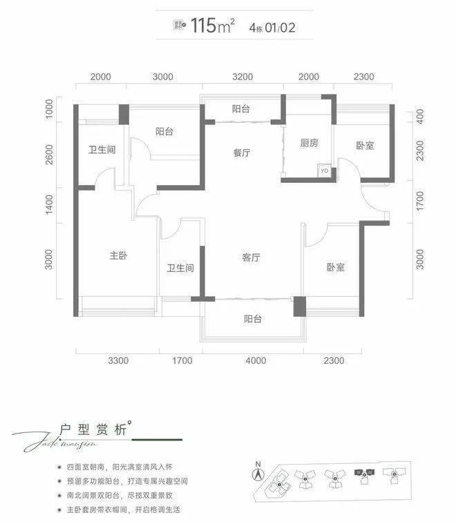 在轻奢温馨的家,把河山的风景意境带入家境。户户朝南,超高实用率,南北通透和双阳台设计,揽阳光清风入室。