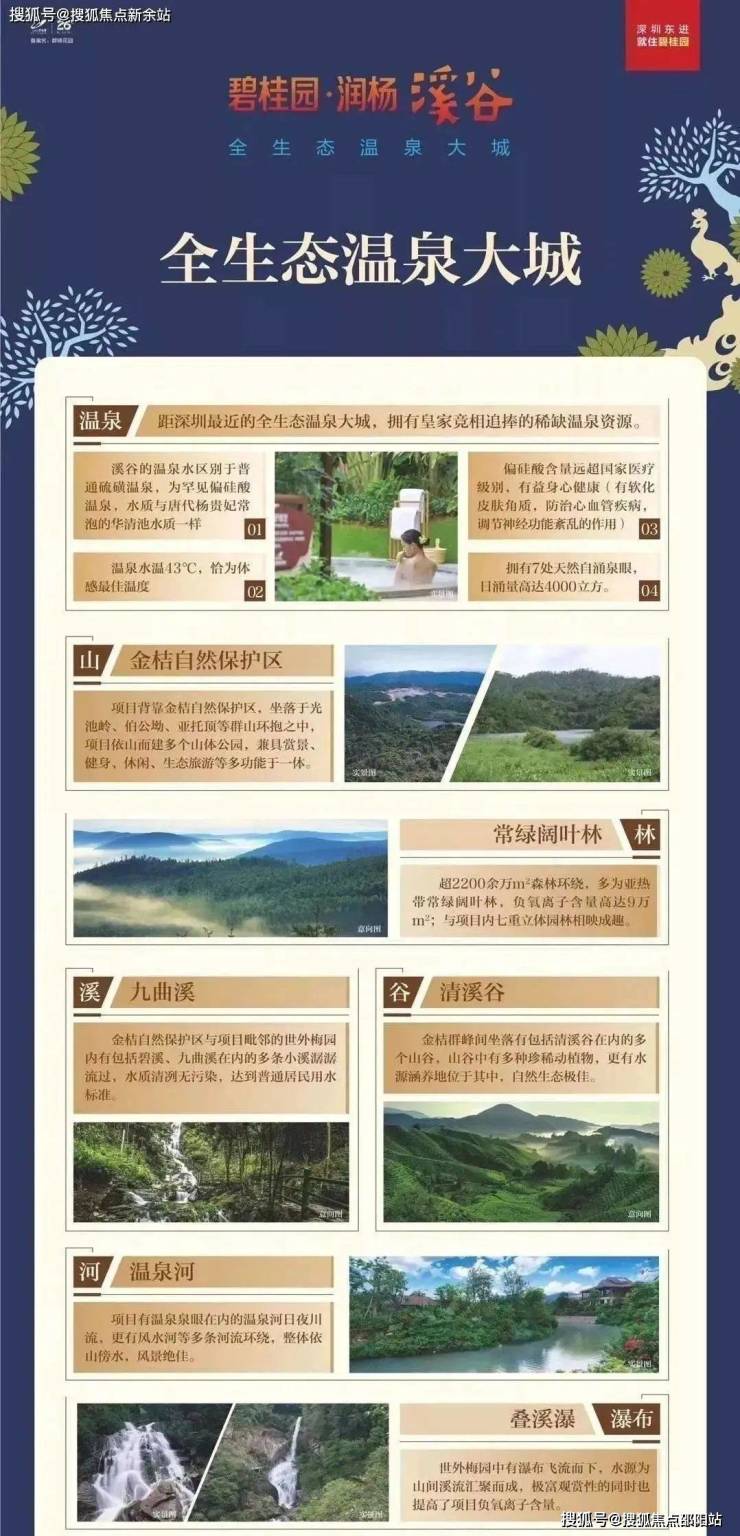 特有天然偏硅酸温泉资源,毗邻金桔自然保护区,面朝10万亩原生林海,内含水杉湿地滨水绿谷,拥合山、林、溪、谷、河、瀑布等自然资源,是集居住、度假、养生等多元配套于一体的全生态温泉大城。