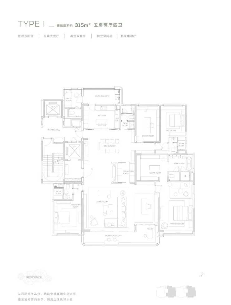 【315㎡户型】南北双阳台-独立保姆房-巨幕大宽厅-私家电梯厅