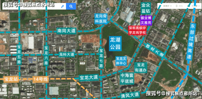 项目紧挨着深圳高级中学龙岗学校,北侧是金众蓝钻,周边有占地25万㎡的龙湖公园,龙岗骨科医院,14号地铁线“宝龙站”距离约1.9公里,还有东部过境高速即将开通。