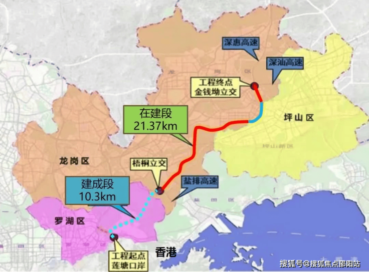 此外,连通龙岗、罗湖的东部过境高速目前建设进度也已经过半,全线贯通后,从家门口上高速到市区非常便捷,经由莲塘口岸,还可以直通香港!