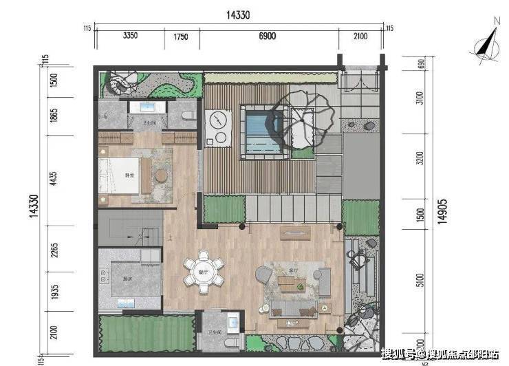 【独栋小院:三室两厅四卫 建面约97㎡】