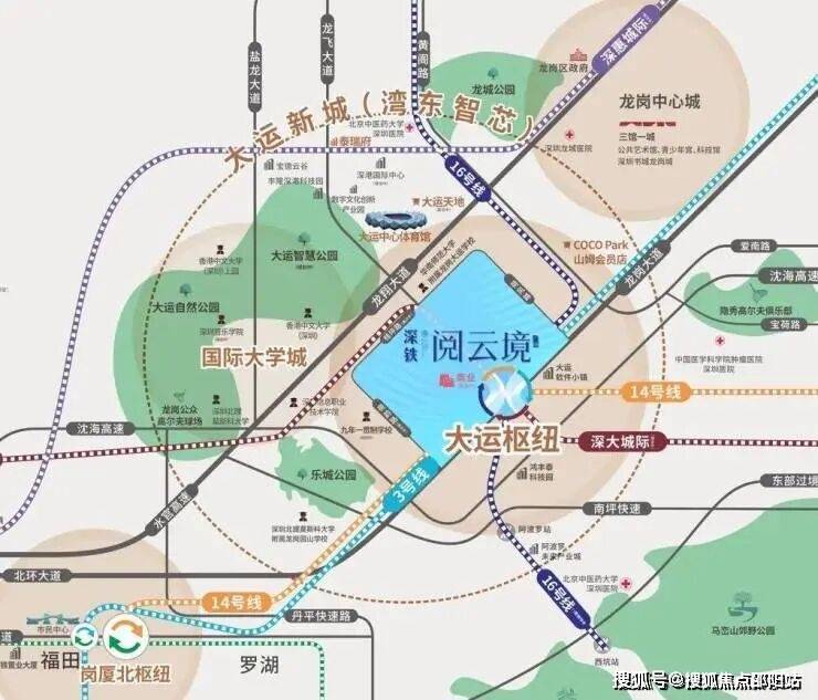深铁阅云境是东部最大的大运交通枢纽站上盖物业,所在的“大运枢纽站”汇聚了3/14/16号线,以及33号线(深大城际),地下室可直达乘坐地铁站,5站到布局枢纽站,可换乘5号线,6站到罗湖,7站到福田黄木岗,8站到福田岗厦北枢纽站。