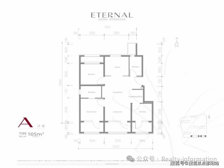 - 南向内嵌阳台+北侧设备平台,105㎡户型实测得房率90%+,媲美125㎡传统三居