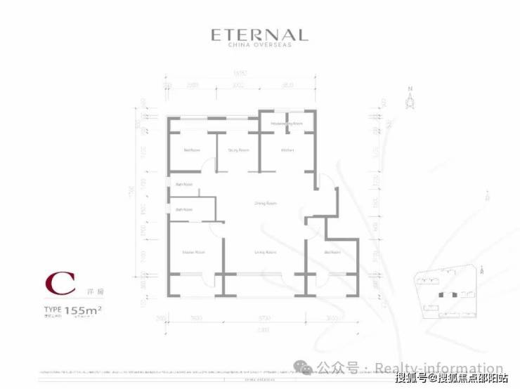 - LDK一体化设计+独立家政间,155㎡户型配备5.7米巨幕横厅,中西双厨满足社交需求