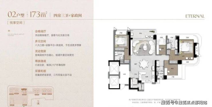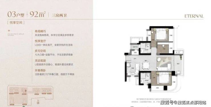 产品设计出色:3梯4户/2梯2户配置,部分户型270°环幕采光,专梯入户。