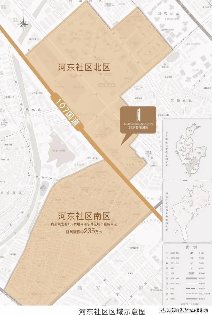 河东社区首发项目——河东骏濠国际,位于河东社区北区,总建面约16万㎡,汇聚商务公寓、办公、商业等于一体,多重复合业态共融,打造107国道封面都会综合体。