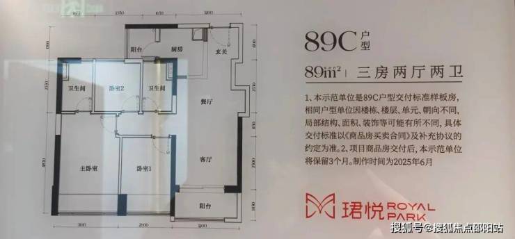 【89㎡三房2卫 A户型】1栋1单元06户(东南向),缺点是直面中粮大悦城写字楼;