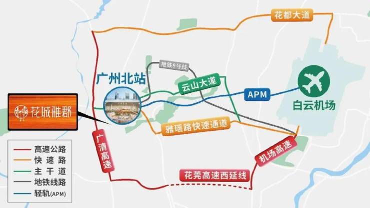 白云机场30分钟直达;随心切换出行方式,内达广州全城,外连世界,为生活提速。