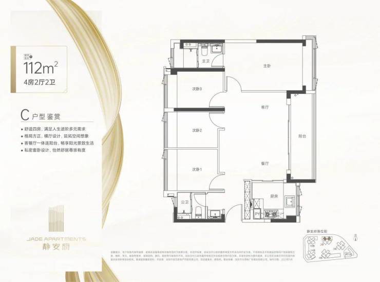 总规划1050套,其中商品房920套,保障性租赁住房130套,1栋B座/2栋是2梯6户,静安府售楼处电话:4009099108,1栋A座是3梯6户,3栋/4栋是3梯7户设计,另外地下3层,停车位有1010个,车位占比1:0.96。