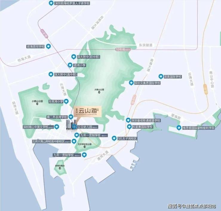 🔘周边教育信息介绍:社区自带双18班幼儿园(建设中)、直线距离约280米公办九年一贯制南二外赤湾学校、深大附中高中部、北师大南山附校高中新校区(即市第三十高级中学,建设中)、两所九年一贯制学校(规划中)