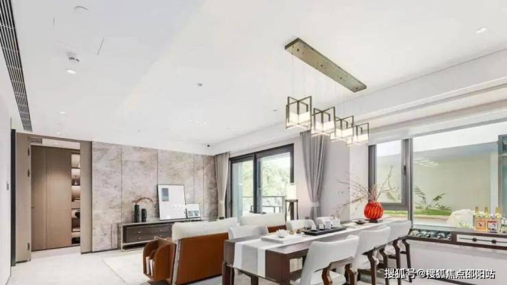 以东方雅韵为出发点,从尺度、比例、制式、材质等细节方面,将新中式建筑精髓与当代格调完美融汇于大门之中;极致挑高尺度,尽显恢弘气度