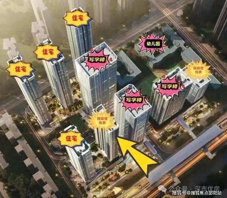 此项目以前是恒大地产的旧改,后被安居建业接手盘活,由深业、万科、特区建工、人才安居集团四家联合出资建设,整个项目有02、04、05三个地块,总建面约55万平,涵盖了写字楼、住宅、商业、可售型保障房、租赁型保障房、教育地块等。其中可售型保障房位于04地块,目前为止已经建设了约9层,但是性质还没明确,暂时不知道是人才房、安居房、共有产权房还是配售型保障房。可售型保障房一共352套,3房2房都是176套,预计4梯8户,楼高162米50层,其中1-4层是架空和裙楼,楼中包含了2层避难层。