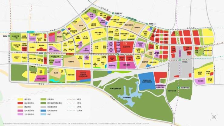 9栋写字楼;7+学校(小、中、高),约15350个学位,深圳高级中学(集团)北校区、格致中学、龙华实验学校(至真校区)、龙华实验学校(至美校区)、龙华实验学校(至善校区,未使用)、民治中学、民治小学、龙华区教育科学研究院附属实验学校等;