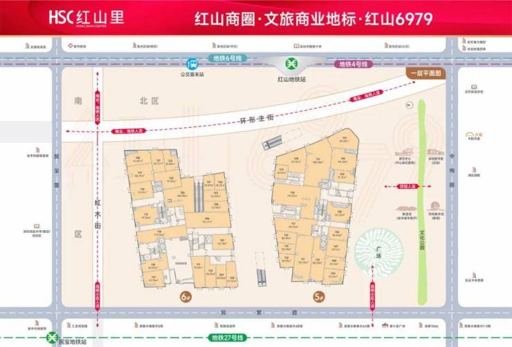 红山6979总建面约17.6万平,6.5万平红山6979沉浸开放式体验街区商业,当下最流行,2020年6月24日开业,200+品牌聚集,50+深圳首店,2.6万平下沉式广场,韩国CGV影院、最强喜剧开心麻花剧场、6000平盒马鲜生三大主力品牌,招商率过95%,龙华夜经济示范街区!