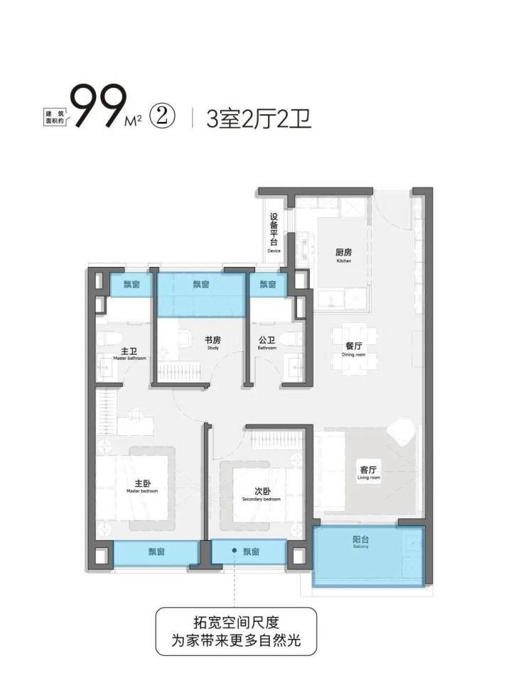 全屋飘窗/阳台设计,不仅增加了使用面积,进一步拓宽房间的空间感,以及光线和视野也得到延伸,让更多阳光与清风进入房间,目之所及的每一眼都是与美的对话。