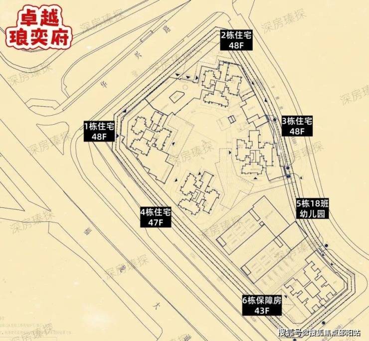 卓越琅奕府一期,总占地面积约2.58万㎡,总建筑面积约22.97万㎡,计容建筑面积约16.08万㎡,容积率5.84,绿化率40.12%,共由5栋总高43-28层的住宅组成,其中1/2/3栋住宅48F,4栋住宅47F,6栋保障房43F,5栋是1所18班制幼儿园,保障房跟商品房分开管理,商品房独立小区。