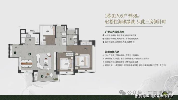 面积段:约85-128平方全南向 超高使用率 新规三至四房