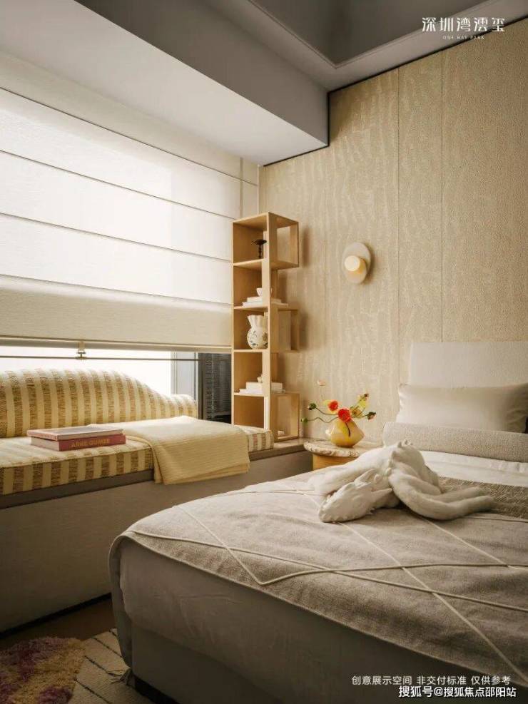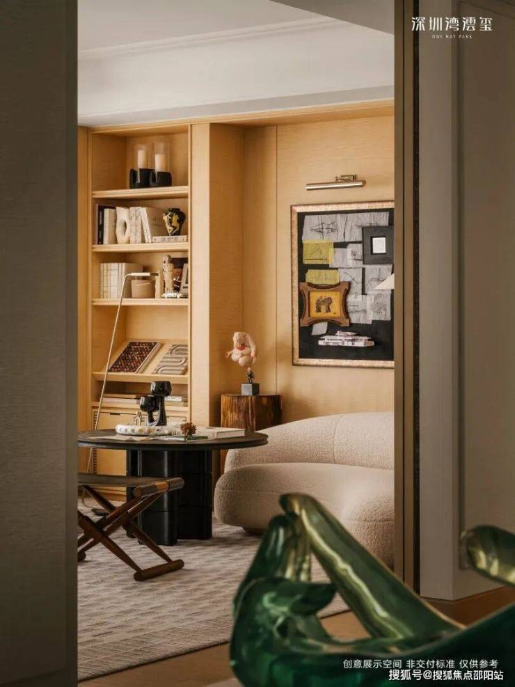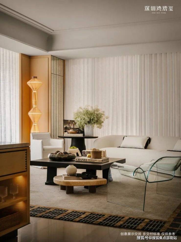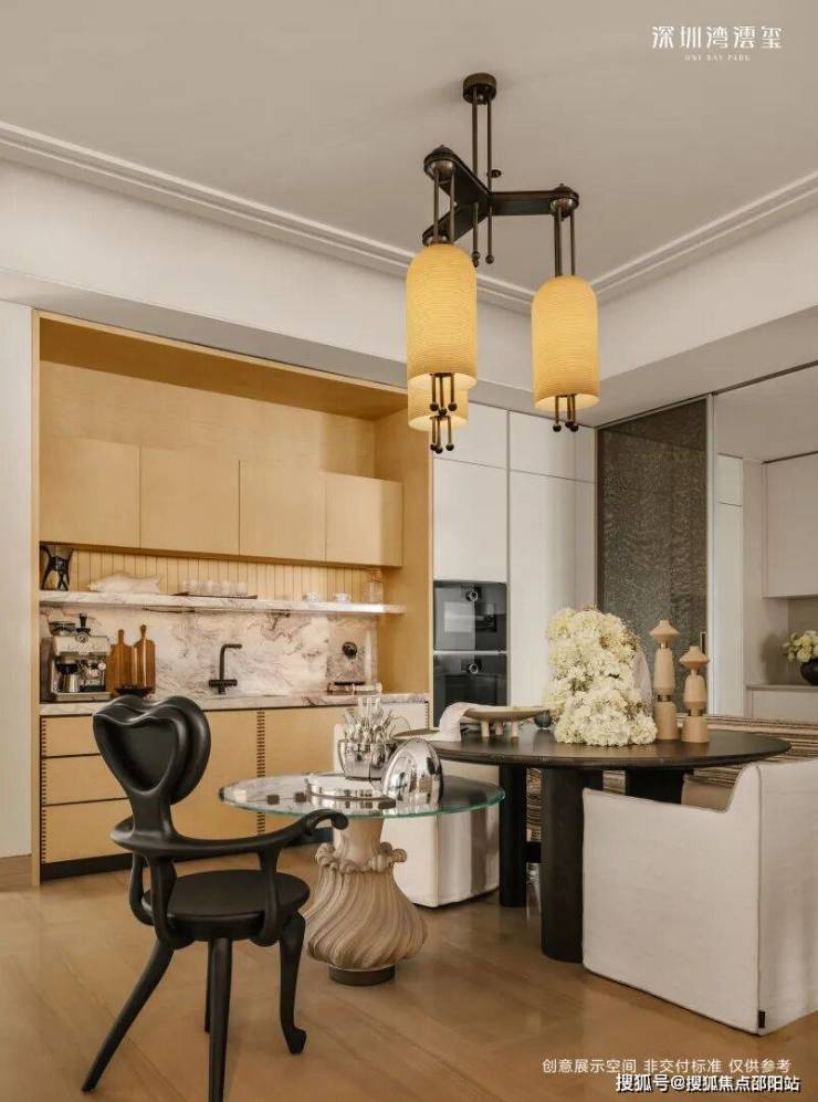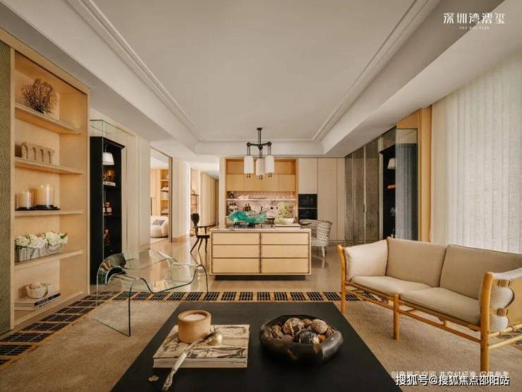 296㎡样板间(CCD设计),现代极简奢雅,以浅色调为基底,搭配天然石材、哑光金属与温润木饰面,践行“少即是多”的设计理念。无主灯的间接照明设计,弱化了空间的厚重感,营造出宁静而高级的氛围,而大面积落地窗与玻璃幕墙,将窗外的深圳湾海景引入室内,让海景成为空间的“流动背景墙”,简约却不简单。