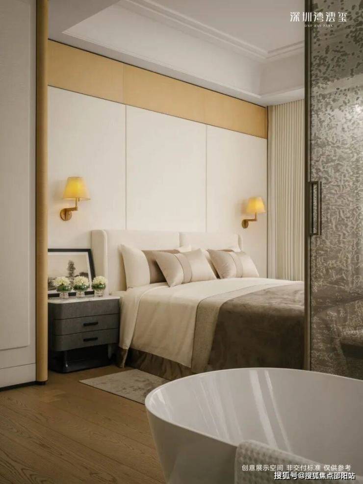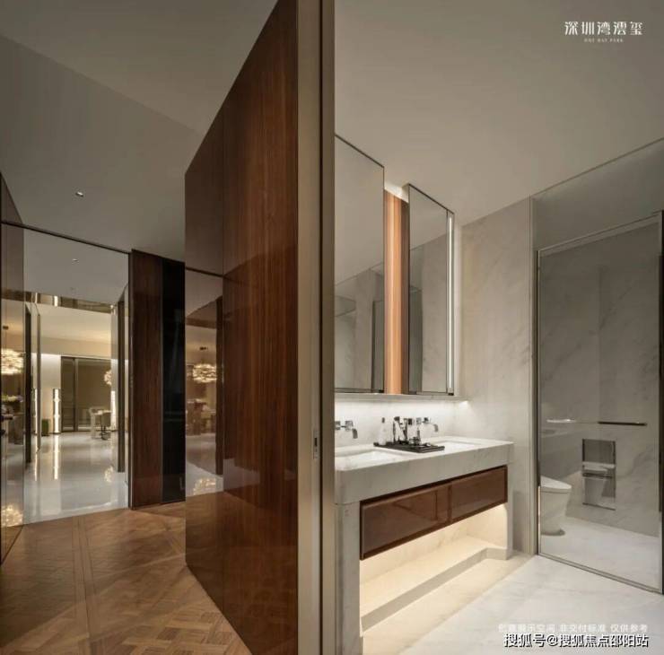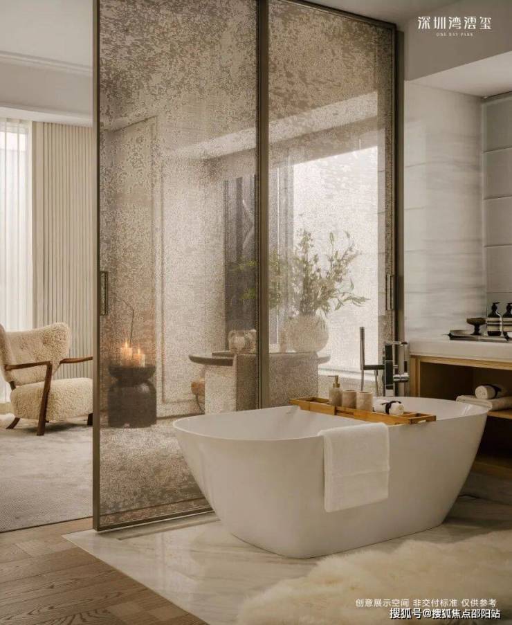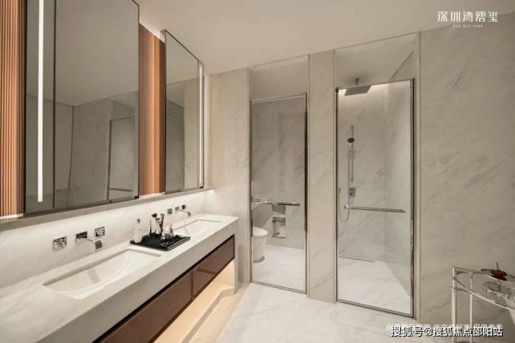 整层 / 半层规划,专梯专户,私享电梯厅;部分带空中庭院;无遮挡俯瞰深圳湾、人才公园、城市天际线;主卧总统套级配置,衣帽间 + 双台盆 + 独立浴缸 + 淋浴间全齐。