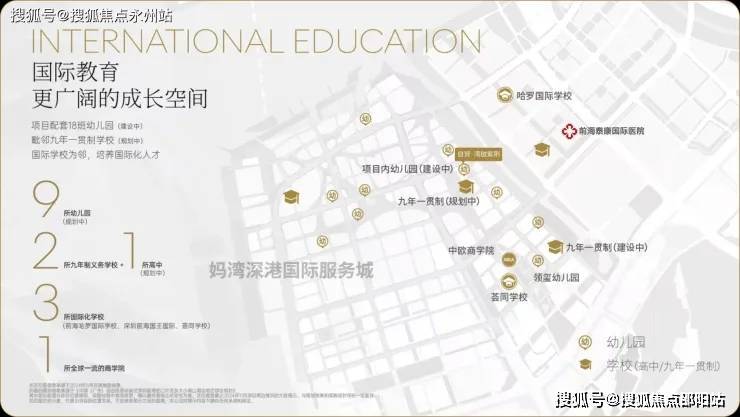 教育方面,自带1所18班幼儿园,东南侧规划有1所九年制36班公办学校(待建),目前还没公布,大概率也是南二外集团校区,会跟紫荆府同步交付;另外在东南侧距离700米处有一所南山第二外国语学校创新学校妈湾校区(在建,预计明年首届招生)