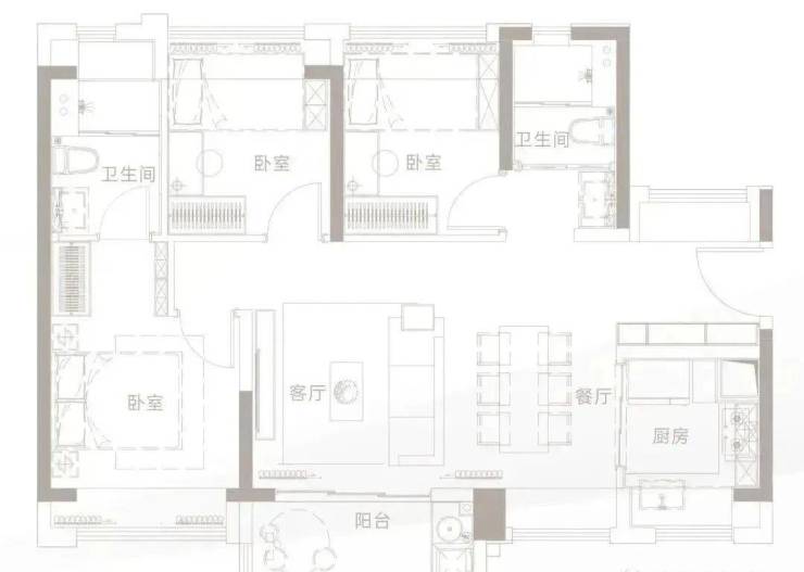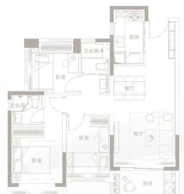 全屋通透三房三面采光,明厨明卫,L型厨房,多元功能合理配置三卧室均带飘窗,空间利用率高。