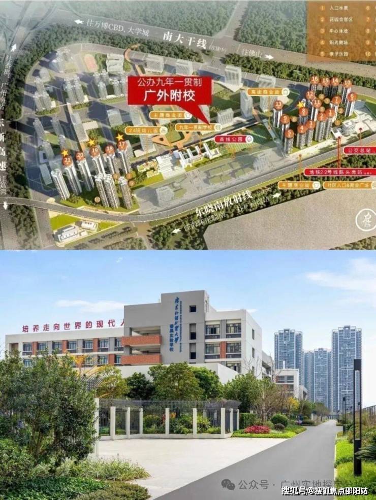 2、教育配套优质,小区内自建27班公办幼儿园和45班九年一贯制广外附属学校,提供1350个小学学位和750个初中学位。广外附校在教育界口碑较好,且为公办学校,免学费,可节省约60万元教育成本。